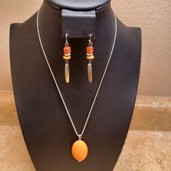 Orange And Silvertone Necklace And Earrings Set $9Mesa, AZ