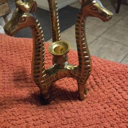 Vintage 60s India Solid Brass 3 Giraffe Tapered Candlestick Candle Holder 9" H x 5 1/2" W weighing close to 2 lbs.$69Yuma, AZ