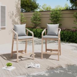 Thalea Wood Outdoor Bar Stool With Cushions, height 28", Set of 2 $225Norwalk, CA