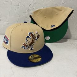 MLB New Era Los Angeles Dodgers Tan Blue Brim Dodger Dog Logo 1st World Series Championship Patch 59fifty Fitted Hats Size 7 1/4, 7 3/8$30City Of Industry, CA