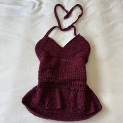 🍷 Boho Crochet Halter Top • Deep Wine Burgundy • Flowy Fairycore Festival Tank • S/P Twenty One$35Los Angeles, CA