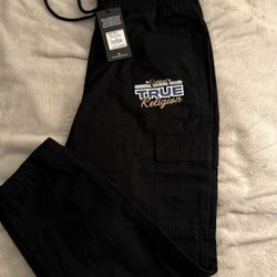 True Religion Size 32 Jet Black Cargo Pant EMB outline $60San Jose, CA