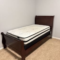 Twin Bed Set - Dark Wood Frame + Mattress + Box Spring$160Fresno, CA