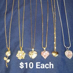 Necklace. Cadena. Gold Color. Silver Color. Rhinestones. Flower. Rose. Pink Heart. Fashion Jewelry $10Huntington Park, CA