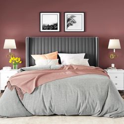 Full Size Velvet Bed Frame/Vertical Channel Tufted Wingback Headboard/Upholstered Platform Bed/Strong Wooden Slats/No Box Spring Needed/Easy Assembly/$100Ontario, CA
