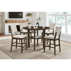 Brand New Oak Finish Counter High Dining Table (48"×36"H) + 4 Biege Linen Chairs$599San Diego, CA