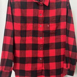 Levi’s Women’s Red Plaid Oversized Flannel Button Up Shirt Size XS - Good Preloved Condition $10Moreno Valley, CA