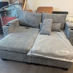 New 63" Loveseat Sofa Bed, Convertible Chaise Lounge Corduroy Sleeper Sofa with Two Cup Holders, A Phone Holder, Storage Box, Side Storage Pockets, Lu$200Chino Hills, CA