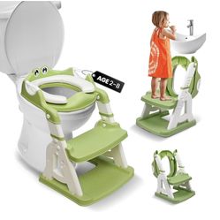 2-in-1 Cushioned Potty Seat with Ladder – Foldable Toddler Toilet Seat & Toddler Step – Step Up Potty Chair With Splash Guard for Boys & Girls – Toile$20Norwalk, CA