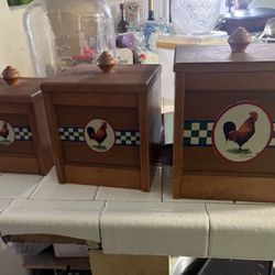 Vintage Ella Roster Wood Canisters Set Of 3$40Crystal City, CA