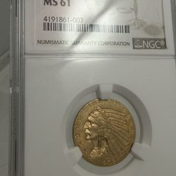 1908 Ms61 Ngc Gold Indian $5 Graded Coin$1,480Garden Grove, CA