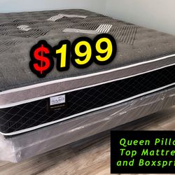12in Queen Size Oasis Thermo Jumbo Pillow Top Mattress and Boxspring$199Whittier, CA