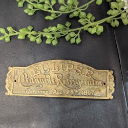 Antique Brass"The Eclipse Cleanable Refrigerator"Ice Chest nameplate/plaque Patent August 24, 1897.$45Carmichael, CA