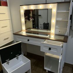 White Vanity w/ Glass Top, Lights & Storage Bench$150Riverside, CA