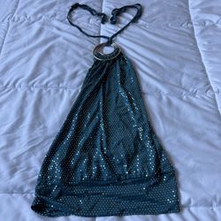 Teal Metallic Polka Dot Halter Top with Silver Ring Detail – Statement Piece - Small$35Los Angeles, CA