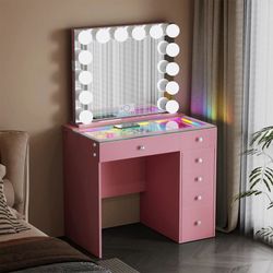 Vanity set Desk and Mirror Pink finish, Bluetooth mirror, RGB Light desk top. New Especial price$690Santa Ana, CA