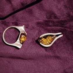Green Amber And Sterling Earrings And Pendant $35Salinas, CA