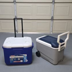 Coleman Wheeled Cooler, Blue, 60 Quart & Igloo MaxCold 40 Qt. Roller Cooler. Both For $80.$80Castro Valley, CA