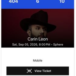 Carin Leon Vegas sphere 09/05/26$210Los Angeles, CA