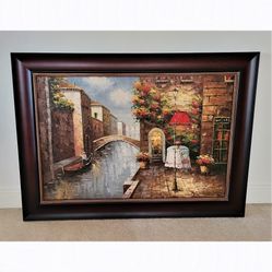 Oil Painting on Canvas Artist Signed Wall Art Venice Canal Gondola Boat Italy
