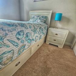 Twin bed set: mattress, mattress cover, bed frame, night table, sheets & quilt$400Wellington, FL