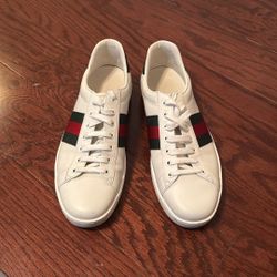 Gucci Ace sneaker (classic white leather with the green-red web stripe and green heel tab)$350Gainesville, FL