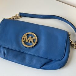 Michael Kors leather baguette purse Blue Clutch with Gold Accents$30Dania Beach, FL