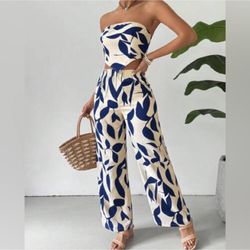 SHEIN Breezaya Women's Crop Tube Top & Wide Leg Pants Set Blue & White Small$11Pompano Beach, FL