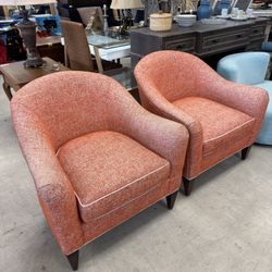 Pair Of HomePop Modern Barrel Accent Chairs in a textured orange/coral fabric$39Boca Raton, FL