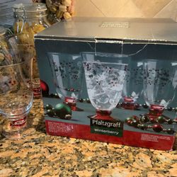 Etched & Handpainted Winterberry Water Goblets Holiday Christmas - 🎄 Glassware Set Of 3 - After Christmas Off-Season Special Price$5Pembroke Pines, FL