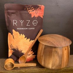 A bag of coffee, two wooden spoons, and a wooden container. $30Lilburn, GA