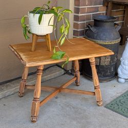 Vintage MCM Charming Birch Cottagecore Turned Leg With Stretcher Accent Table Plant Stand$50Lake In The Hills, IL