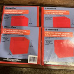 Lot of 4 NIP Essentials collapsible storage containers red 9x9x8 -pull handle$10Homer Glen, IL