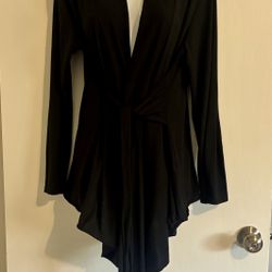 Acevog Women Size L Open Front Wrap Tie Jacket Cardigan Black Long Sleeve Draped$10Worth, IL