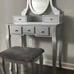 Silver Wood Makeup Vanity Table and Stool Set$70Springfield, VA