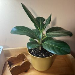 Ficus In Yellow Pot $25Cape Eliz, ME
