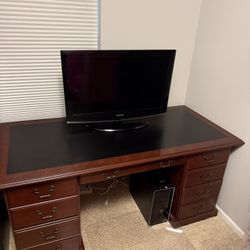 Solid Wood Executive Desk – Cherry Finish w/ black Top – Good Condition and Samsung 32” flat LCD TV$80Williamsburg, MI