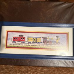 Train Up A Child" Framed Wall Art – Proverbs 22:6 Nursery Decor – Blue Frame $5East Alton, IL