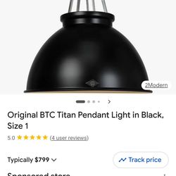 Original BTC Titan Light Pendant in Black Size 1$225Mebane, NC