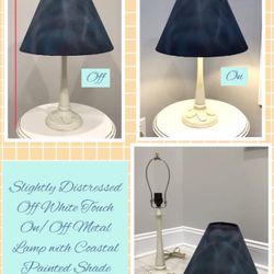 SALE!! Slightly Distressed Off White Touch On/Off Metal Lamp with Coastal Painted Shade$15Wilmington, NC