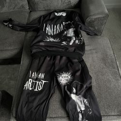 Black Graphic Tracksuit – “I AM AN ARTIST” & “BORN GREATNESS” – Size Large $25Wild Rice, ND