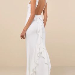 Exquisite Refinement Ivory Backless Bow Ruffled Maxi Dress$75Moorhead, MN
