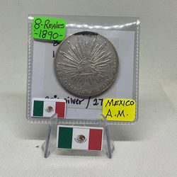 1890 Mexico ๐ฒ๐ฝ 8- Reales silver coin.$159Brooklyn, NY