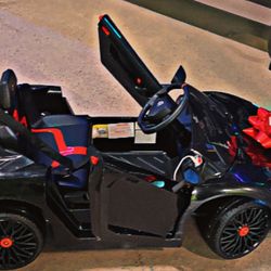 black Lamborghini style ride-on electric car. Has cool scissor doors and red accents. Comes with a seatbelt. remote and music Great for little drivers$150Glenville, NY