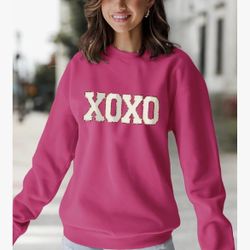 Women’s Size XL Valentine Letter Printed Chenille Patch Pullover Sweatshirt, Rose Red, NEW$45Dayton, OH
