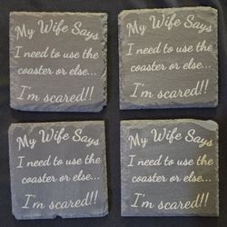 Set of 4 Slate Coasters with Humorous Script$15Indiahoma, OK