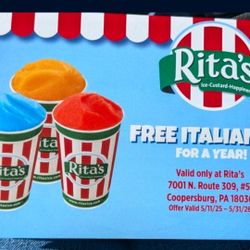 'Free' Rita's Italian Ice - 40 Size Small Coupons (Coopersburg Location)$20Northampton, PA