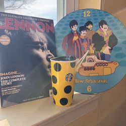 Beatles Yellow Submarine Clock + Lennon Book + Starbucks Mug 🎸 Retro Decor$40Spring City, PA