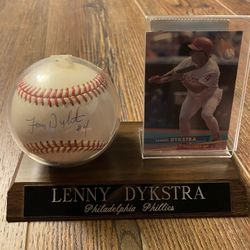 Philadelphia Phillies Lenny Dykstra Signed 1993 World Series Ball With Card On Stand With COA$70Lancaster, PA
