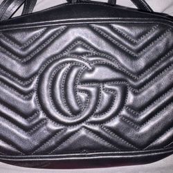 Gucci Marmont Matelassé bag (black leather with chevron stitching and antique gold GG logo). $300Middletown, PA